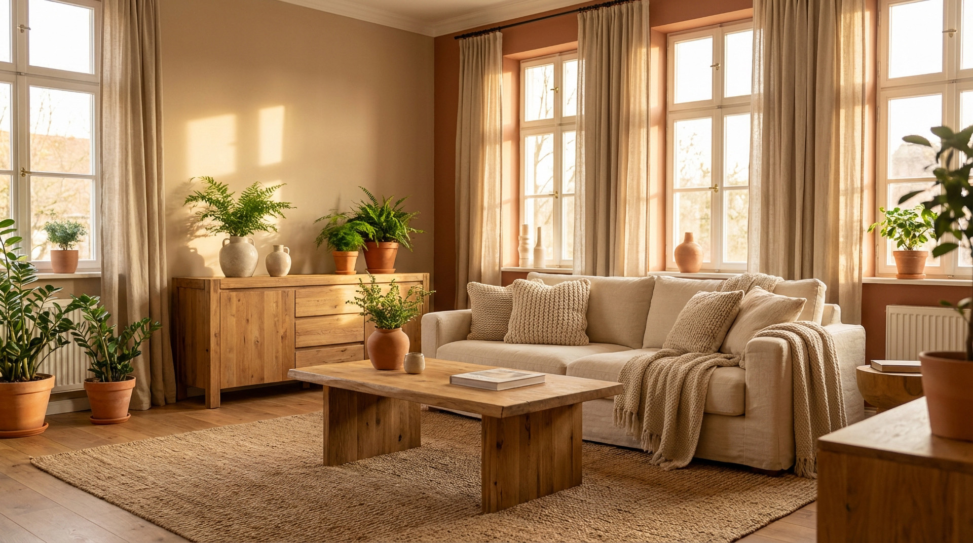 Naturfarben bezeichnen sowohl unbehandelte, ungefärbte Materialien in ihrer ursprünglichen Farbgebung als auch eine Palette von Farbtönen, die sich an natürlichen Vorbildern orientieren. In der Wohnraumgestaltung gewinnen Naturfarben zunehmend an Bedeutung, da sie eine Verbindung zwischen nachhaltiger Materialwahl und harmonischer Raumwirkung schaffen. Der Begriff umfasst dabei zwei wesentliche Bereiche: die Materialeigenschaft unbehandelter Stoffe und die bewusste Verwendung erdiger, naturnaher Farbtöne.